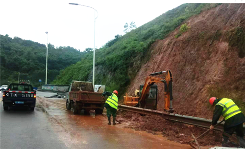 在收到汛情通報后,搶險小組第一時間設(shè)置警示標(biāo)識并進行相應(yīng)排查搶險處置。本次搶險,共出動人員40余人次,搶險車輛10輛、挖掘機1輛、裝載機1輛、拖車1輛、抽水機3臺、防洪沙袋40余個。
