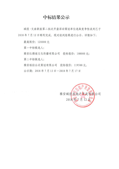 城投·文曲新座第二批次開(kāi)盤活動(dòng)競(jìng)爭(zhēng)性談判中標(biāo)結(jié)果公示