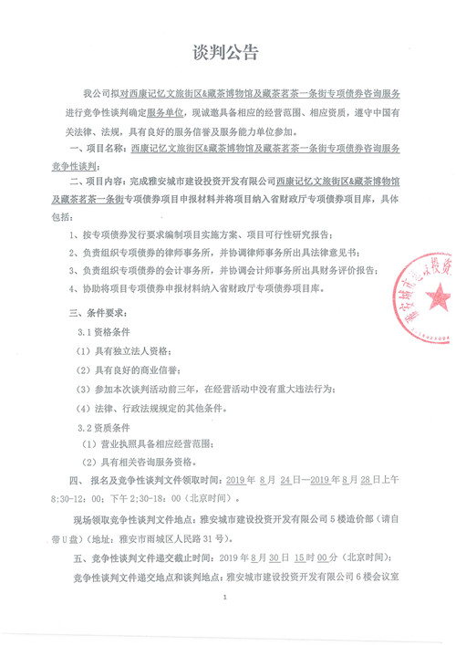 西康記憶文旅街區(qū)&藏茶博物館及藏茶茗茶一條街專項(xiàng)債券咨詢服務(wù)競(jìng)爭(zhēng)性談判公告