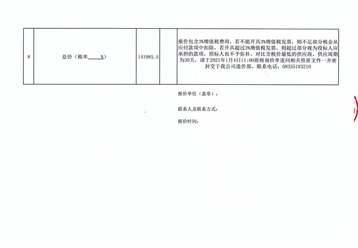 詢價(jià)清單