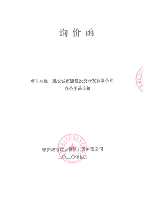 雅安城市建設(shè)投資開(kāi)發(fā)有限公司辦公用品詢(xún)價(jià)