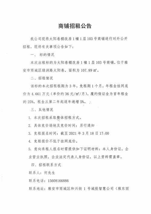 商鋪招租公告