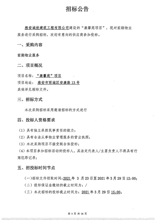 城投建工公司康馨苑項(xiàng)目前期物業(yè)服務(wù)招標(biāo)公告