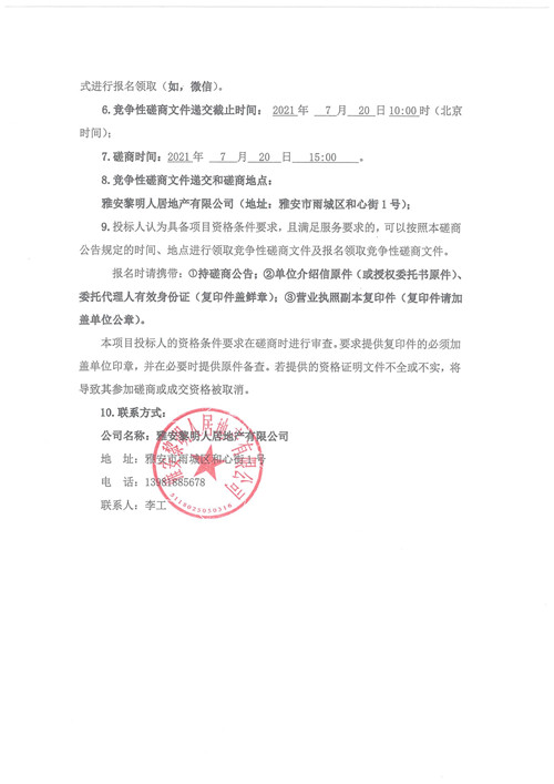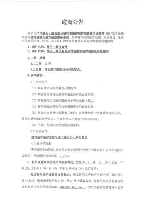 黎明人居公司黎明·蒙頂壹號(hào)臨時(shí)售樓部裝飾裝修競爭性磋商公告