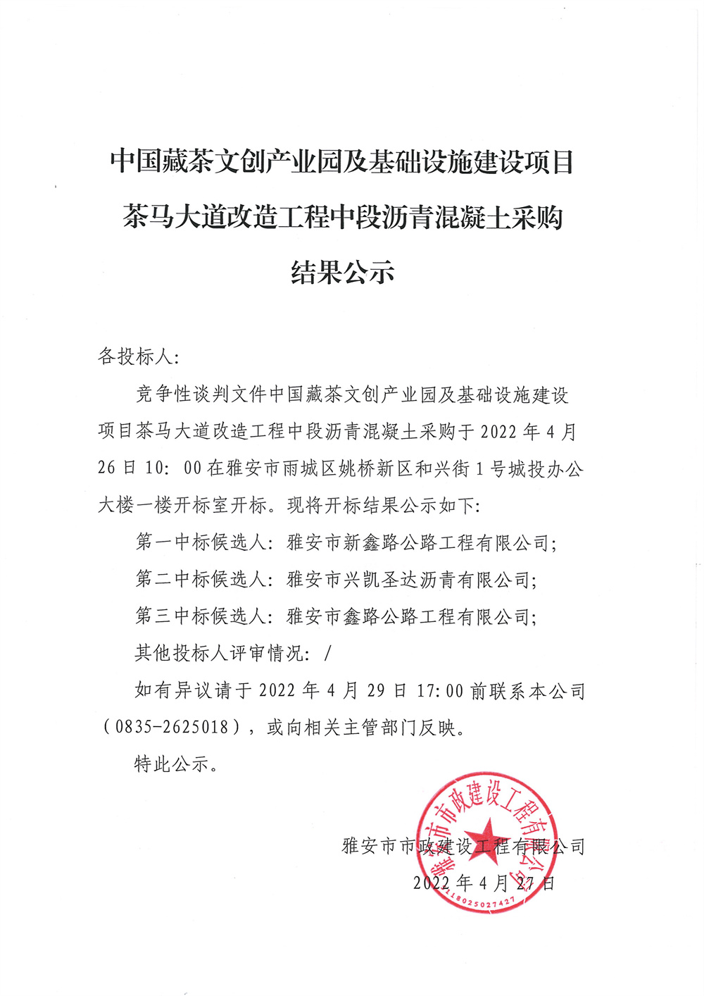 中國(guó)藏茶文創(chuàng)產(chǎn)業(yè)園及基礎(chǔ)設(shè)施建設(shè)項(xiàng)目茶馬大道改造工程中段瀝青采購(gòu)競(jìng)爭(zhēng)性談判結(jié)果公示