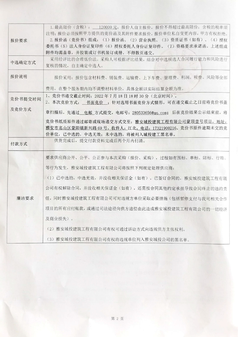 蒙頂壹號(hào)項(xiàng)目GRC線條采購(gòu)競(jìng)爭(zhēng)公告