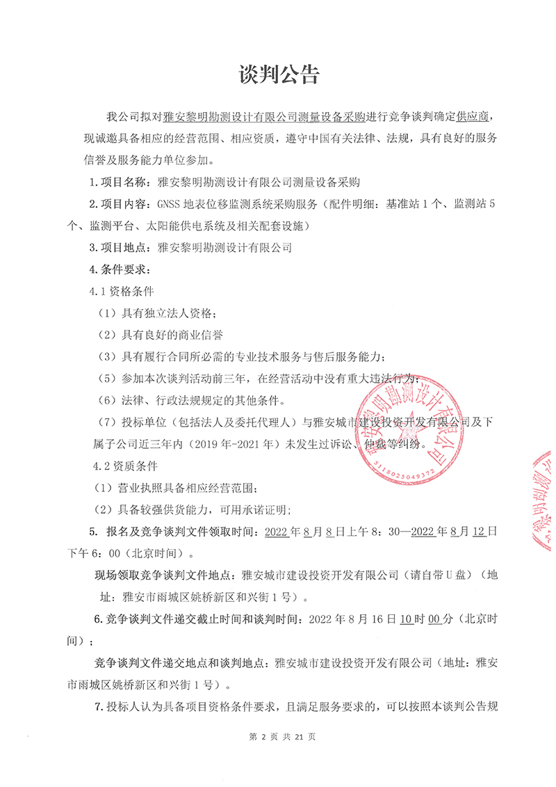 雅安黎明勘測設(shè)計有限公司測量設(shè)備采購競爭談判文件