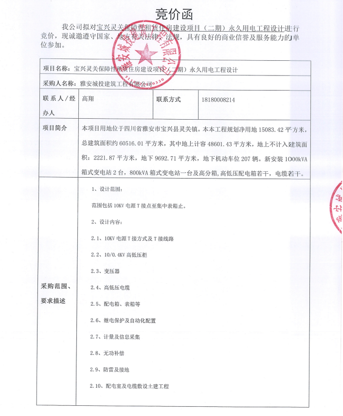 寶興縣靈關保障性租賃住房建設項目(二期)永久用電工程設計競價公告