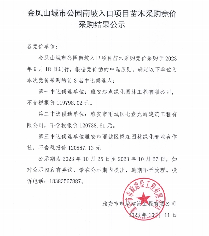 金鳳山城市公園南坡入口項(xiàng)目苗木采購競(jìng)價(jià)采購結(jié)果公示