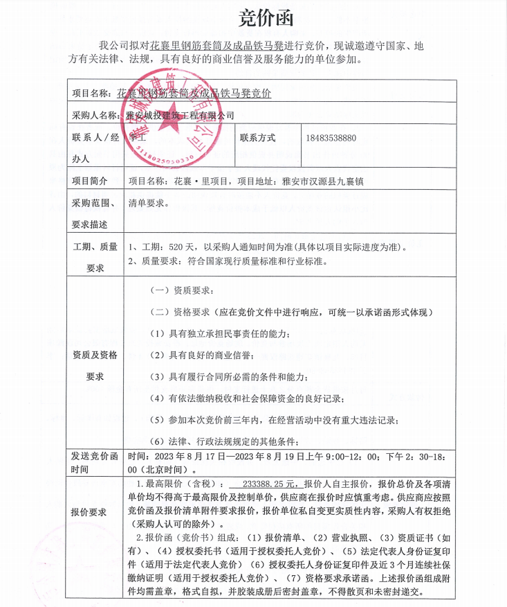 花襄·里鋼筋套筒及成品鐵馬凳競價公告