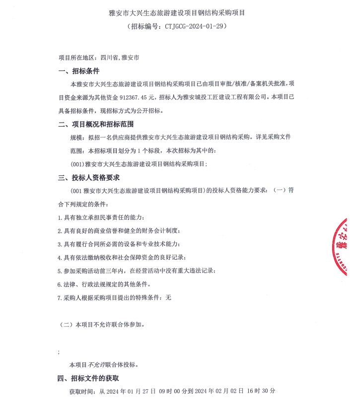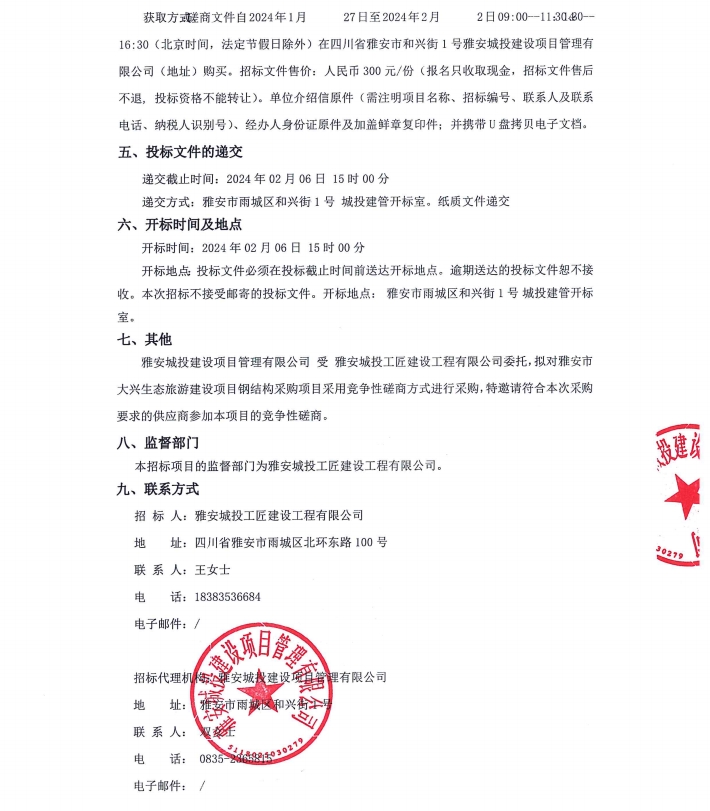 雅安市大興生態(tài)旅游建設(shè)項(xiàng)目鋼結(jié)構(gòu)采購(gòu)項(xiàng)目公告