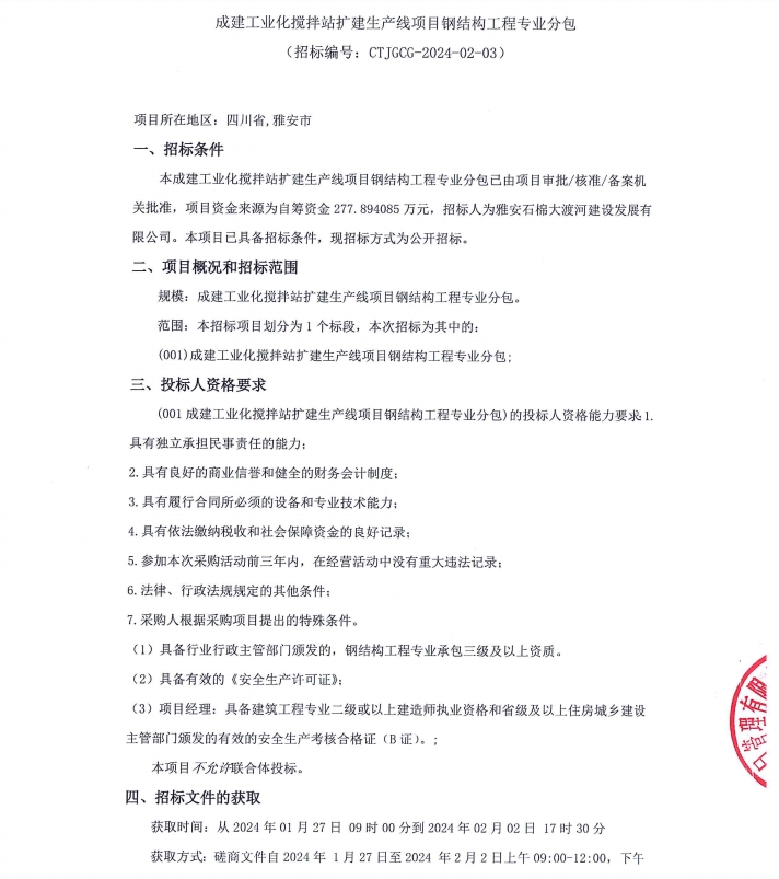 成建工業(yè)化攪拌站擴建生產(chǎn)線項目鋼結構工程專業(yè)分包公告
