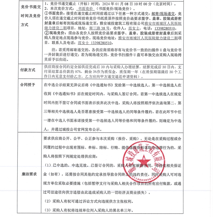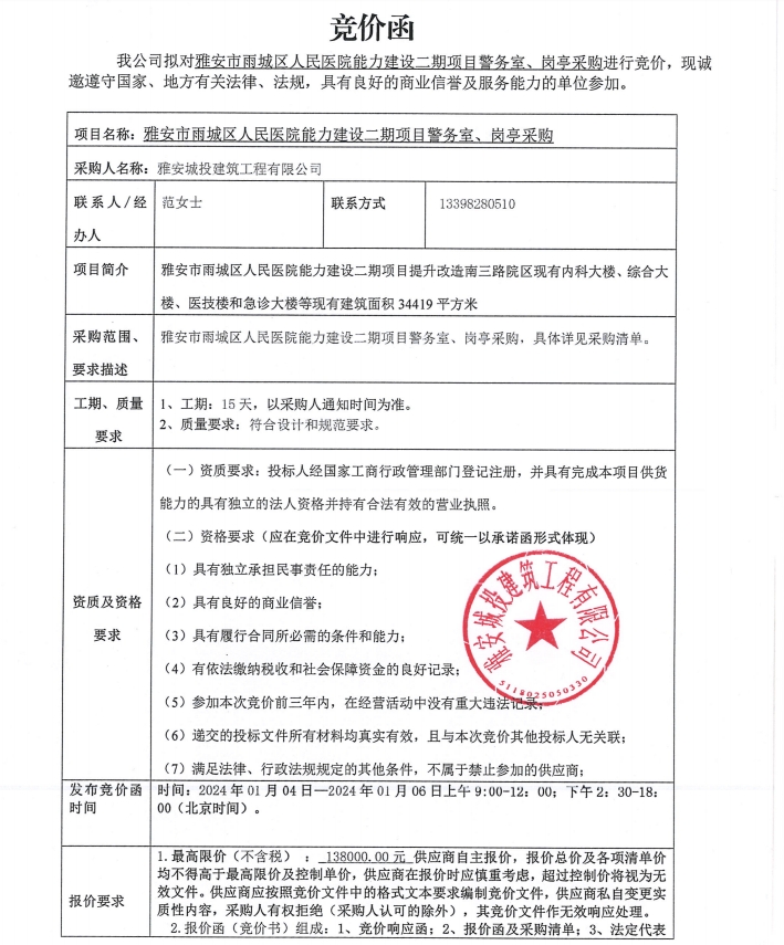 雅安市雨城區(qū)人民醫(yī)院能力建設(shè)二期項(xiàng)目警務(wù)室、崗?fù)げ少徃們r公告