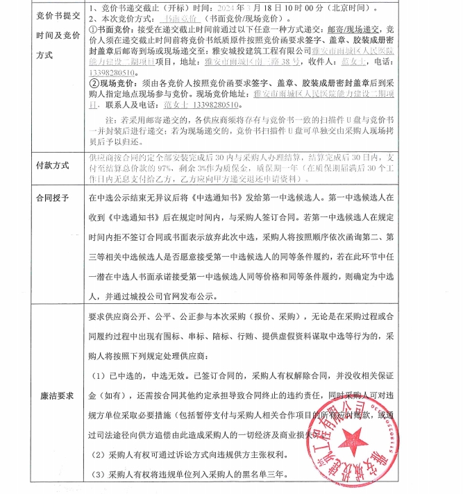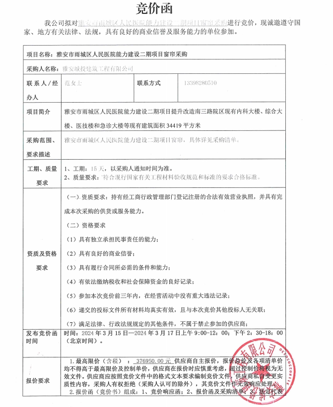 雅安市雨城區(qū)人民醫(yī)院能力建設二期項目窗簾采購競價公告