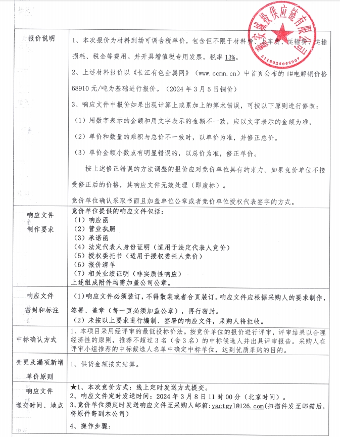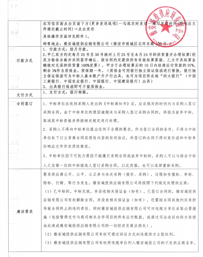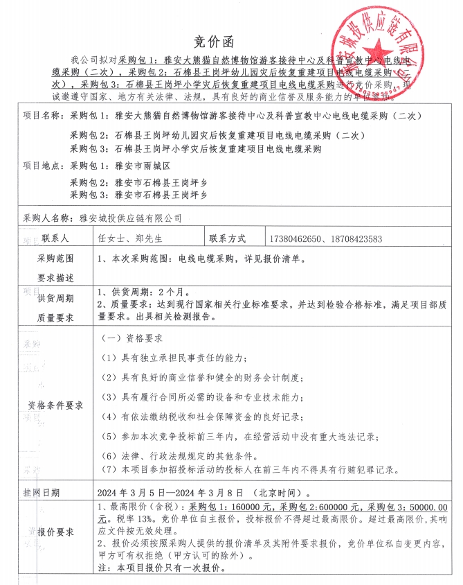 雅安城投供應(yīng)鏈有限公司電線電纜采購競價公告