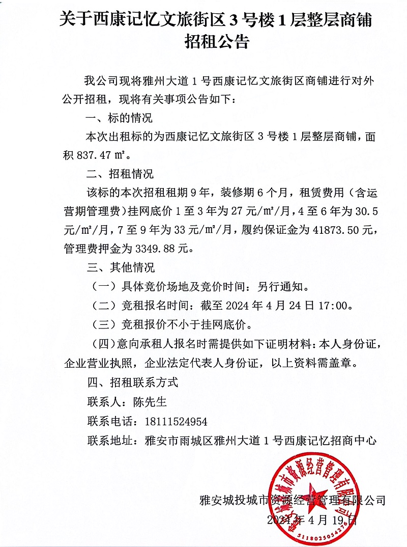 關(guān)于西康記憶文旅街區(qū)3號樓1層整層商鋪招租公告