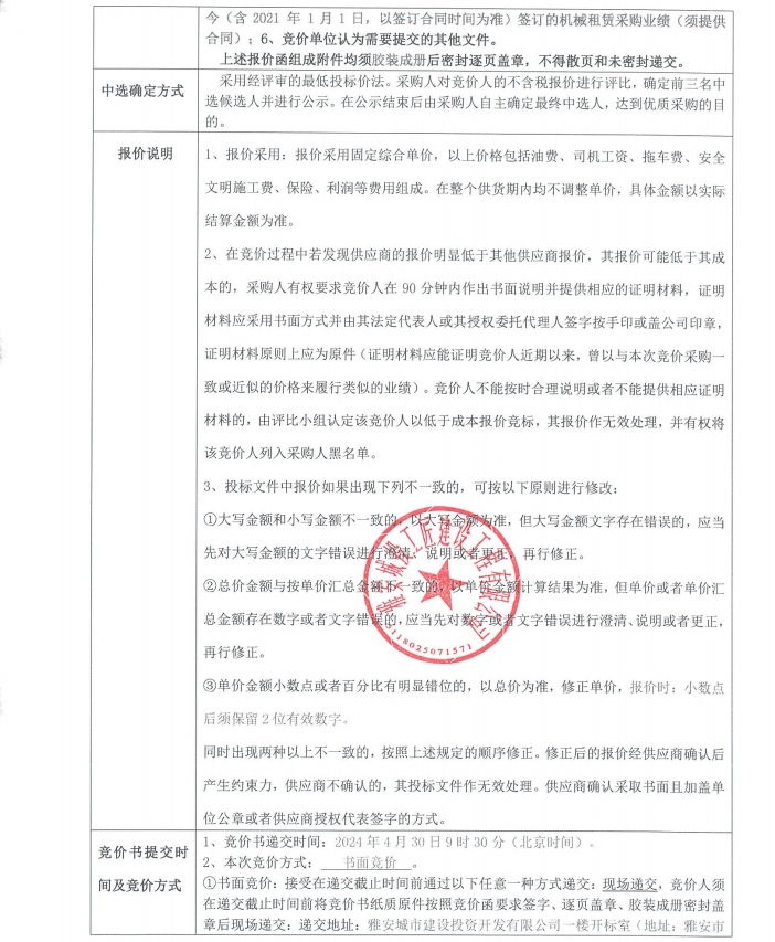 雅州壹號(hào)院總坪項(xiàng)目(樣板段)機(jī)械租賃采購(gòu)競(jìng)價(jià)公告