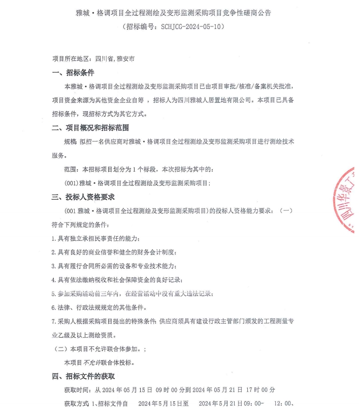 雅城·格調(diào)項(xiàng)目全過(guò)程測(cè)繪及變形監(jiān)測(cè)采購(gòu)項(xiàng)目競(jìng)爭(zhēng)性磋商公告