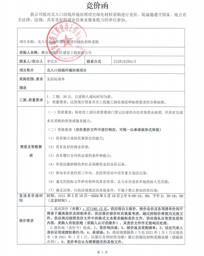 北入口沿線環(huán)境治理項(xiàng)目綠化材料采購(gòu)競(jìng)價(jià)公告