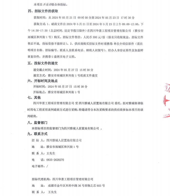 雅城格調(diào)臨時(shí)用電工程公告