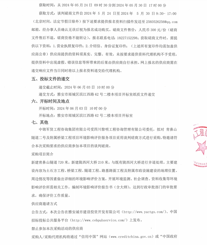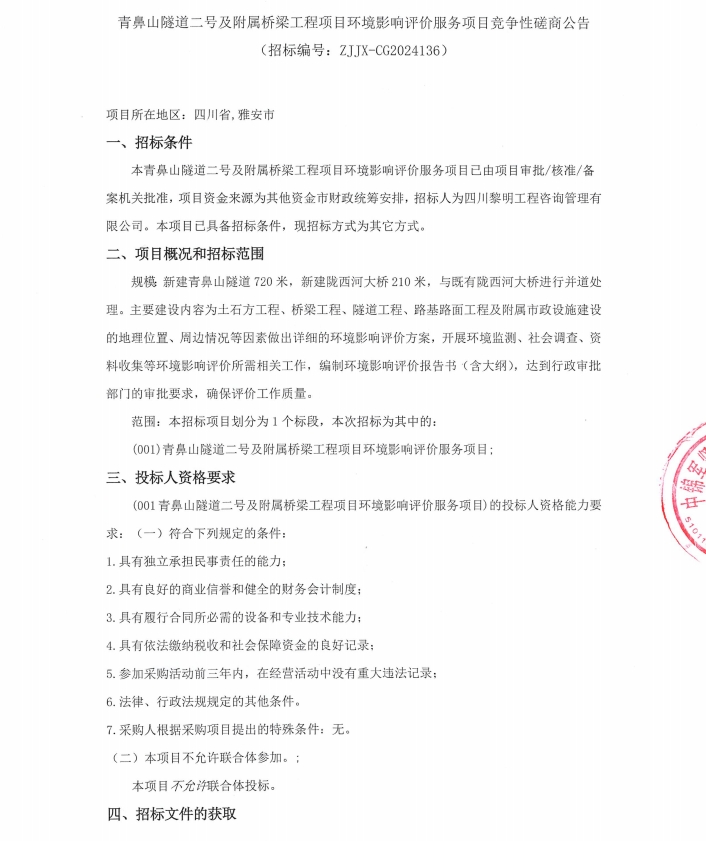 青鼻山隧道二號及附屬橋梁工程項(xiàng)目環(huán)境影響評價(jià)服務(wù)項(xiàng)目競爭性磋商公告