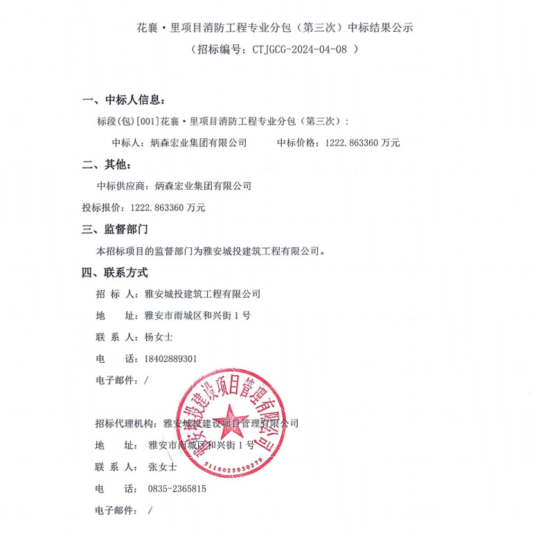 花襄·里項(xiàng)目消防工程專(zhuān)業(yè)分包(第三次)中標(biāo)結(jié)果公示