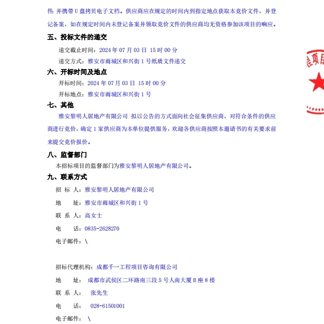 蒙頂壹號開荒保潔采購項(xiàng)目公告