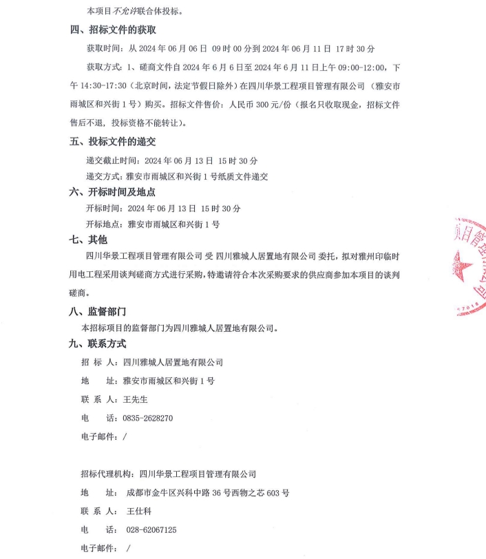 雅州印臨時(shí)用電工程招標(biāo)公告