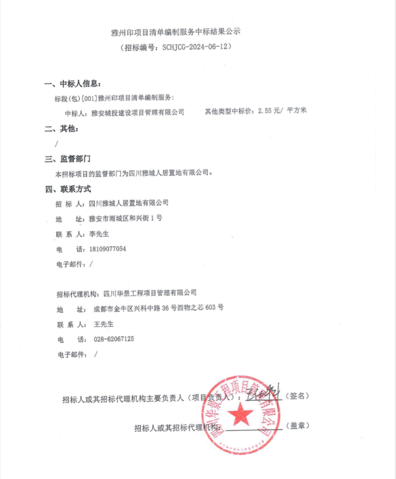 雅州印項目清單編制服務(wù)中標(biāo)結(jié)果公示