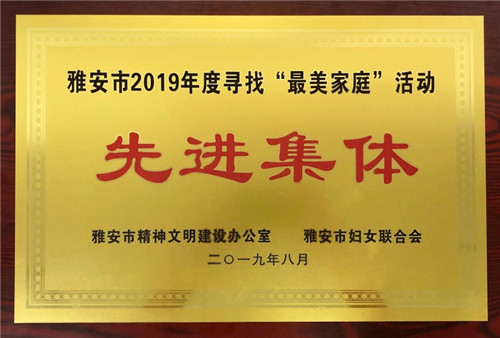 9月27日,城投公司雅安市2019年尋找“最美家庭”活動(dòng)先進(jìn)集體稱(chēng)號(hào)。